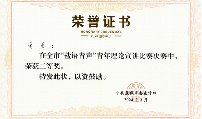 集團(tuán)職工獲全市“鹽語青聲”青年理論宣講比賽二等獎