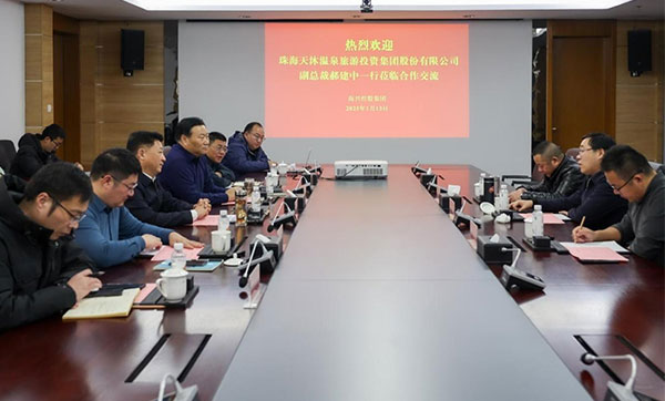 1月13日下午,集團(tuán)黨委書記、董事長董毅會見天沐溫泉旅游投資集團(tuán)股份有限公司副總裁郝建中一行,雙方就月亮灣度假區(qū)海濱溫泉酒店項目合作開展交流探討。2025-01-15 -