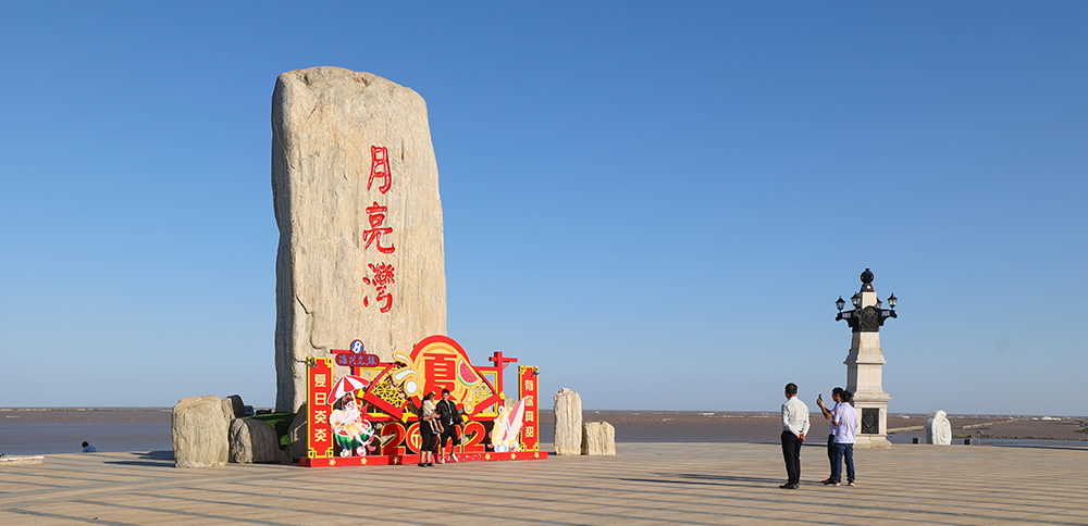 月堤海景公園北至翻身河口,南至月亮灣,瀕臨黃海,公園海堤長約1.5公里,建有月亮灣觀景平臺、月亮老人、淮劇廣場、繽紛濱海、濱海之門、法治長廊等景觀,是集觀光賞景與健身互動為一體的休閑公園。